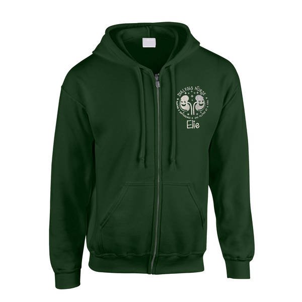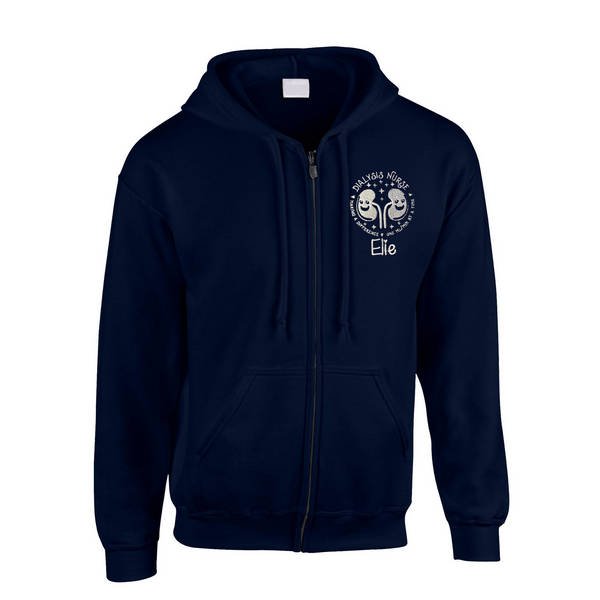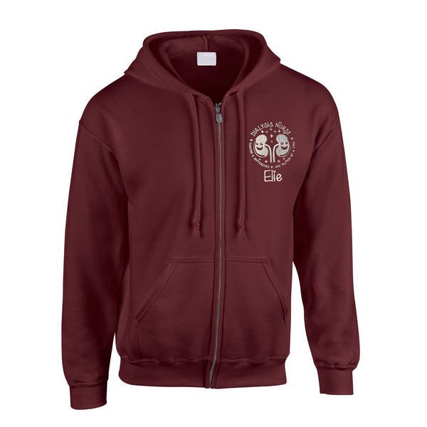 To order your personalised Healthcare Nursing Kidney Dialysis Design Zipped Hoodie, please select your size and colour. Then use the text boxes provided to supply what you would like us to stitch on your zipped hoodie.