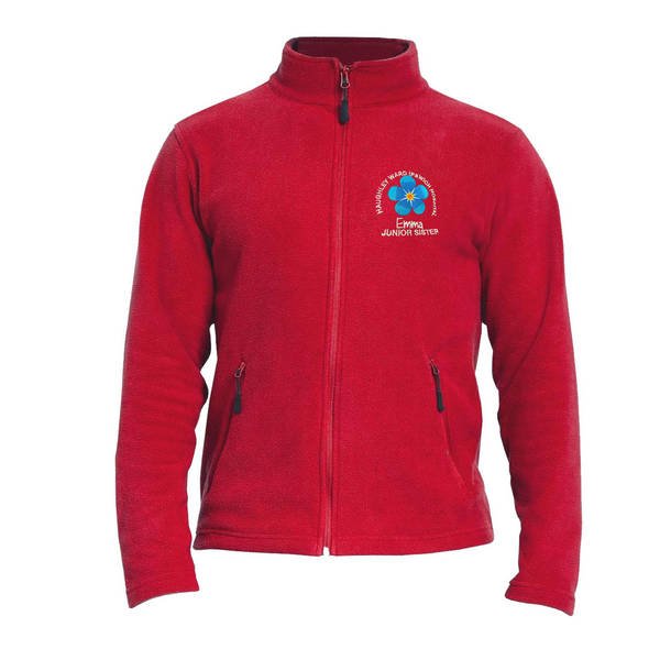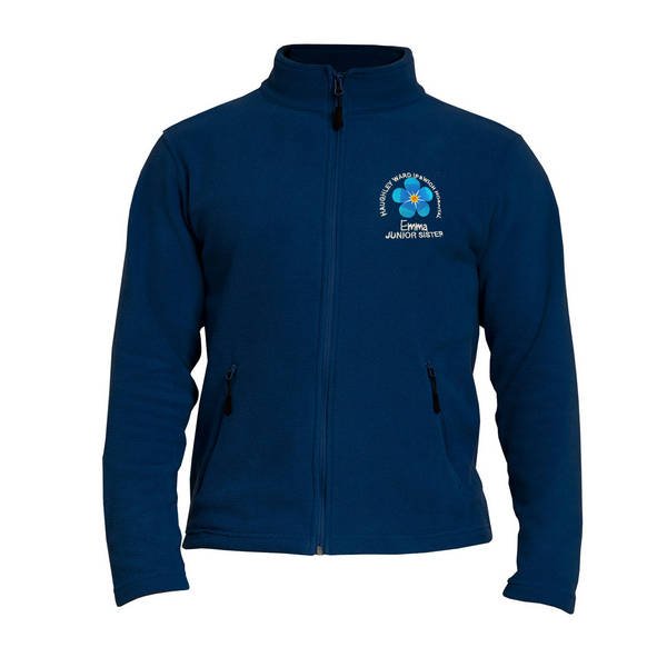 To order your personalised Healthcare Nursing Blue Forget Me Not Design Fleece Jacket/Coat, please select your size and colour. Then use the text boxes provided to supply what you would like us to stitch on your zipped hoodie.