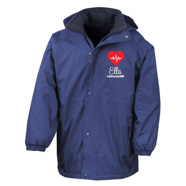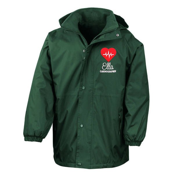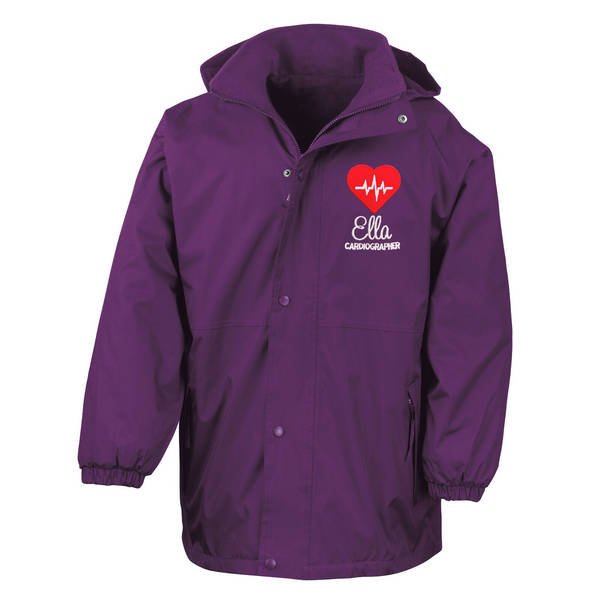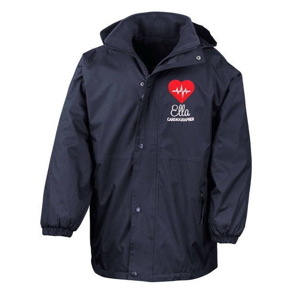 To order your personalised Healthcare Nursing Red Heart Beat Design Waterproof Coat, please select your size and colour. Then use the text boxes provided to supply what you would like us to stitch on your soft shell.