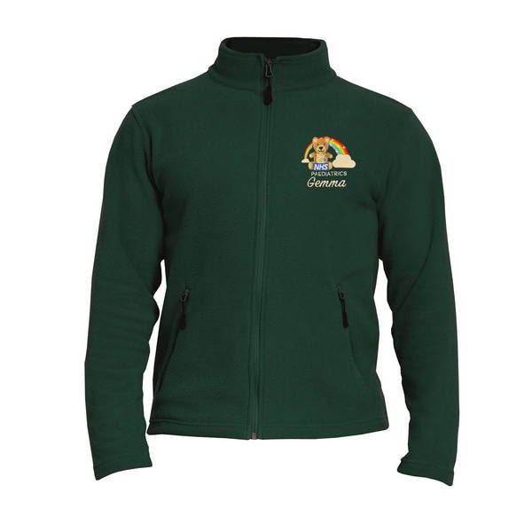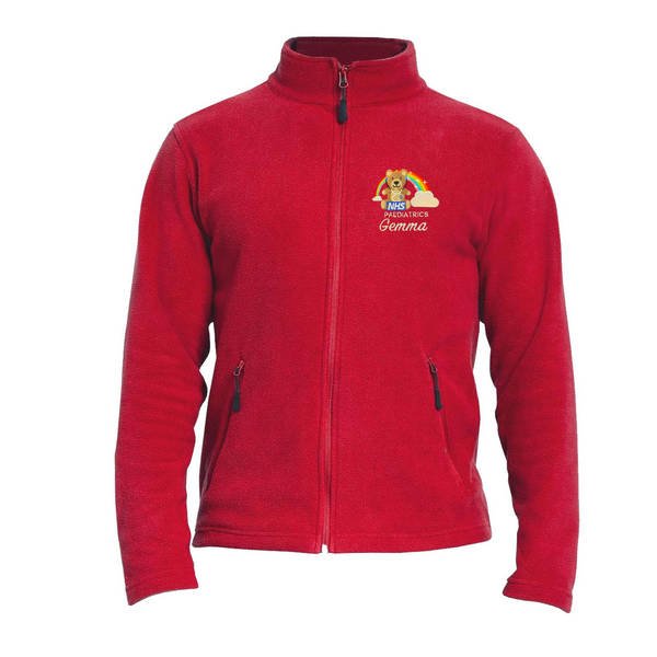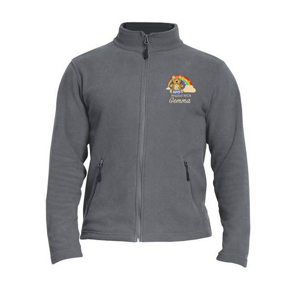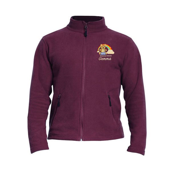 To order your personalised Healthcare Bear & Rainbow Stethoscope Fleece Jacket/Coat, please select your size and colour. Then use the text boxes provided to supply what you would like us to stitch on your zipped hoodie.
