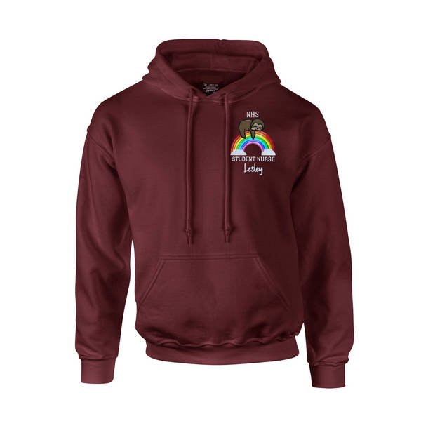 To order your personalised Healthcare Lazy Sloth Rainbow Design Pullover Hoodie, please select your size and colour. Then use the text boxes provided to supply what you would like us to stitch on your hoodie.