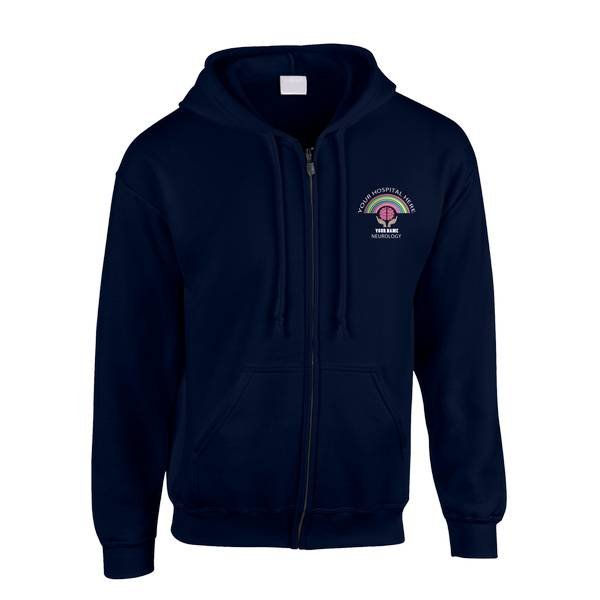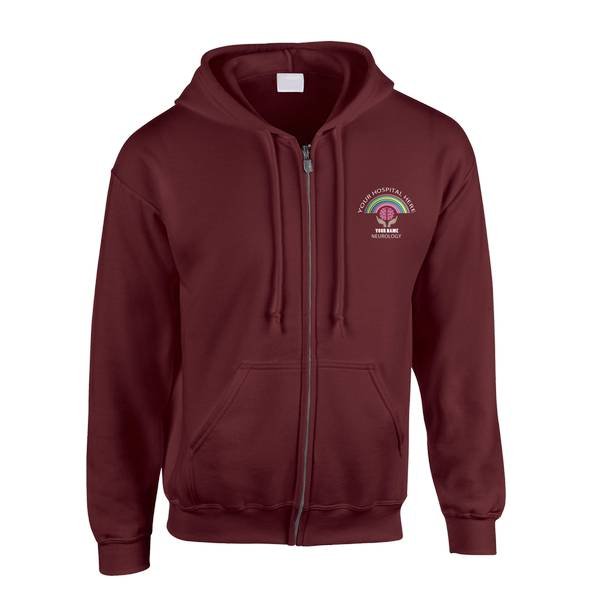 To order your personalised Healthcare Nursing Brain in Hands & Rainbow Zipped Hoodie, please select your size and colour. Then use the text boxes provided to supply what you would like us to stitch on your zipped hoodie.