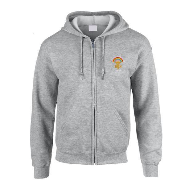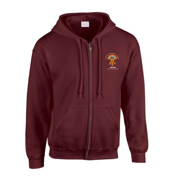 To order your personalised Healthcare Registered Nurse & Rainbow Zipped Hoodie, please select your size and colour. Then use the text boxes provided to supply what you would like us to stitch on your zipped hoodie.