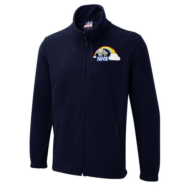 To order your personalised Healthcare Two Elephants Cloud & Rainbow Design Budget Fleece, please select your size and colour. Then use the text boxes provided to supply what you would like us to stitch on your budget fleece.