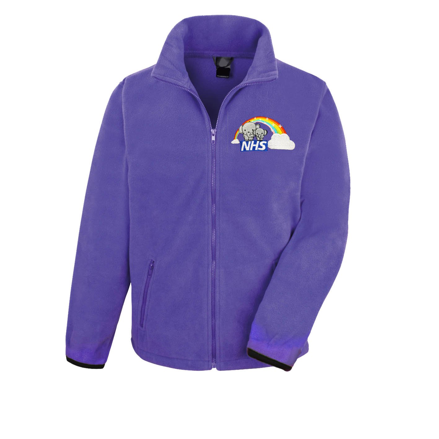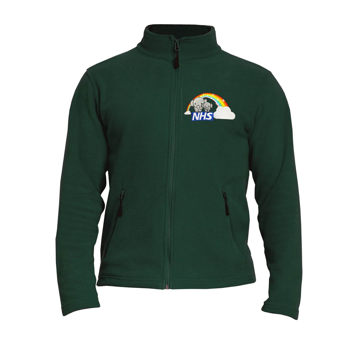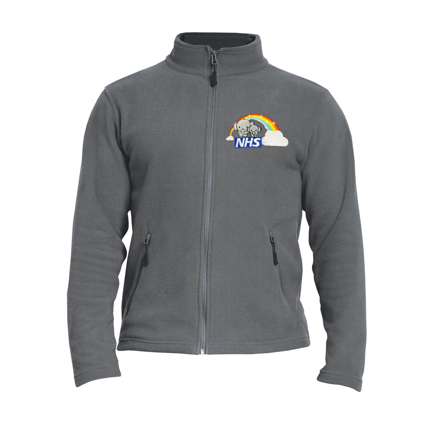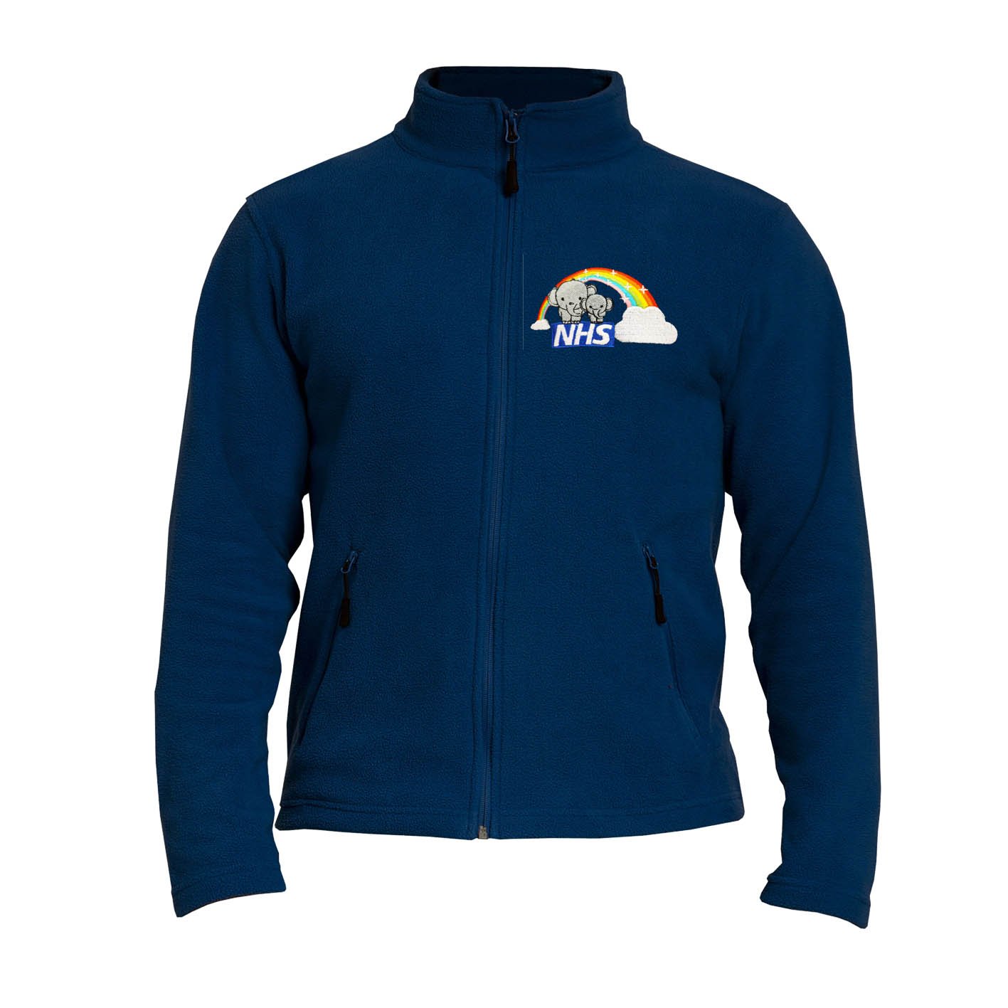 To order your personalised Healthcare Two Elephants Cloud & Rainbow Fleece Jacket/Coat, please select your size and colour. Then use the text boxes provided to supply what you would like us to stitch on your fleece.