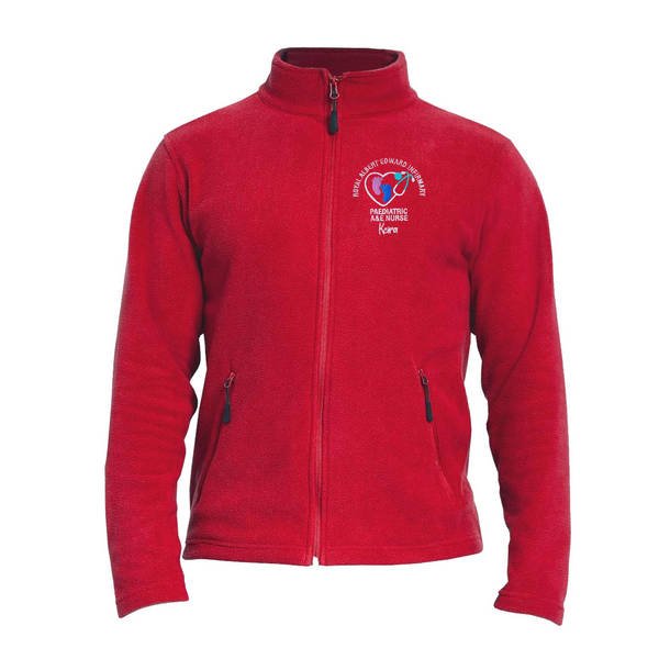 To order your personalised Healthcare Nursing Stethoscope Baby Feet Fleece Jacket/Coat, please select your size and colour. Then use the text boxes provided to supply what you would like us to stitch on your fleece.